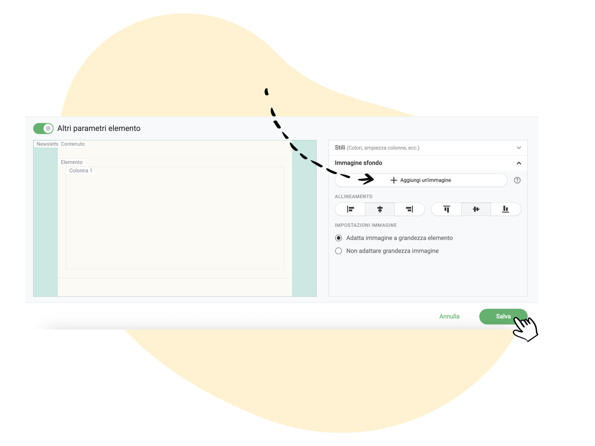 Ecco come aggiungere un'immagine di sfondo dietro il testo della newsletter