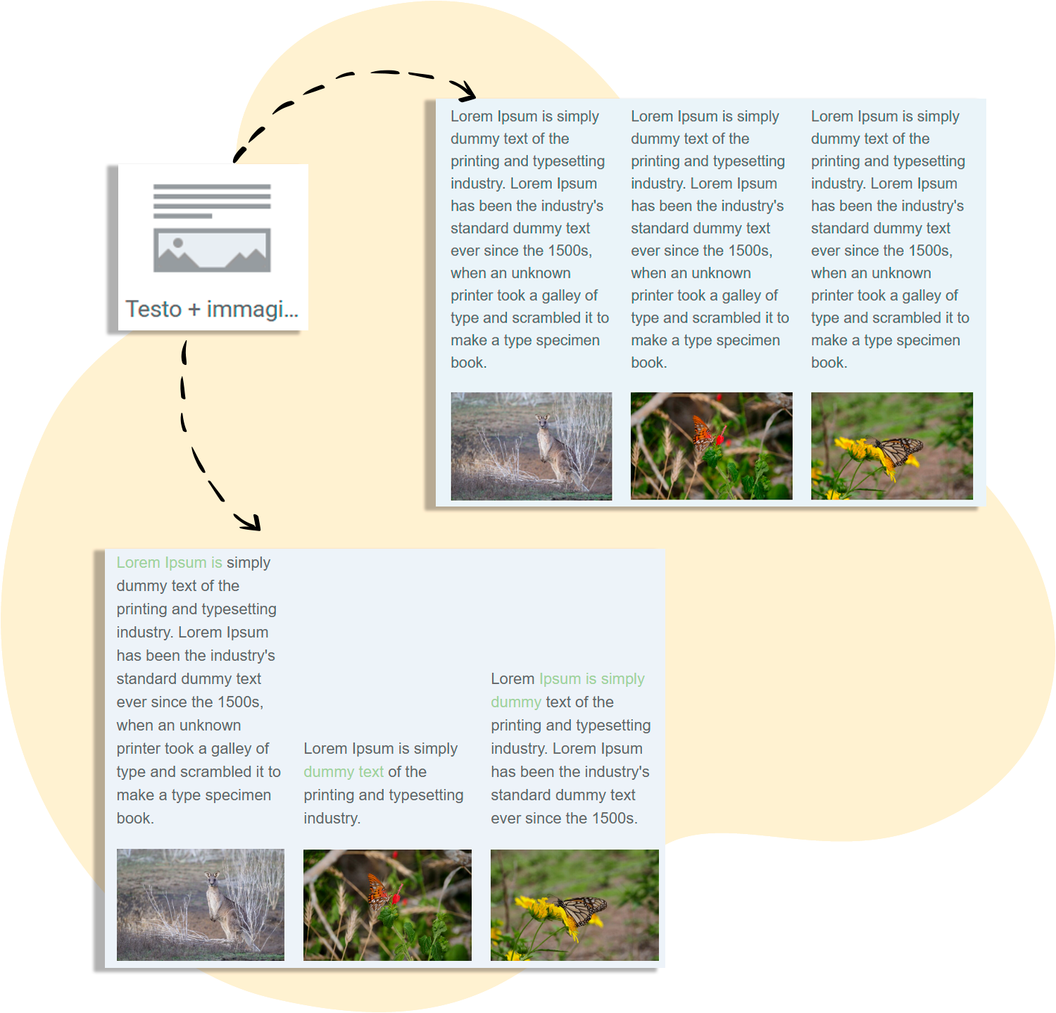 Se invece le immagini sono uguali e i testi hanno lunghezze diverse, ti consigliamo di allineare in alto. Il risultato sarà simile a questo: