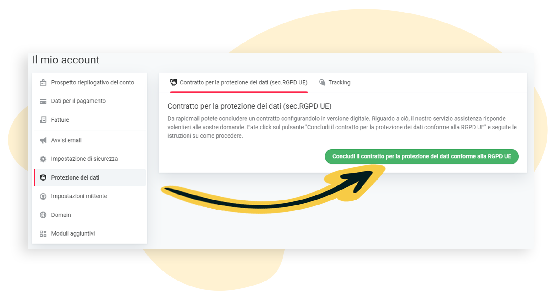 ❗ Importante: puoi stipulare il contratto sulla protezione dei dati con rapidmail solo dopo l’attivazione dell’account!