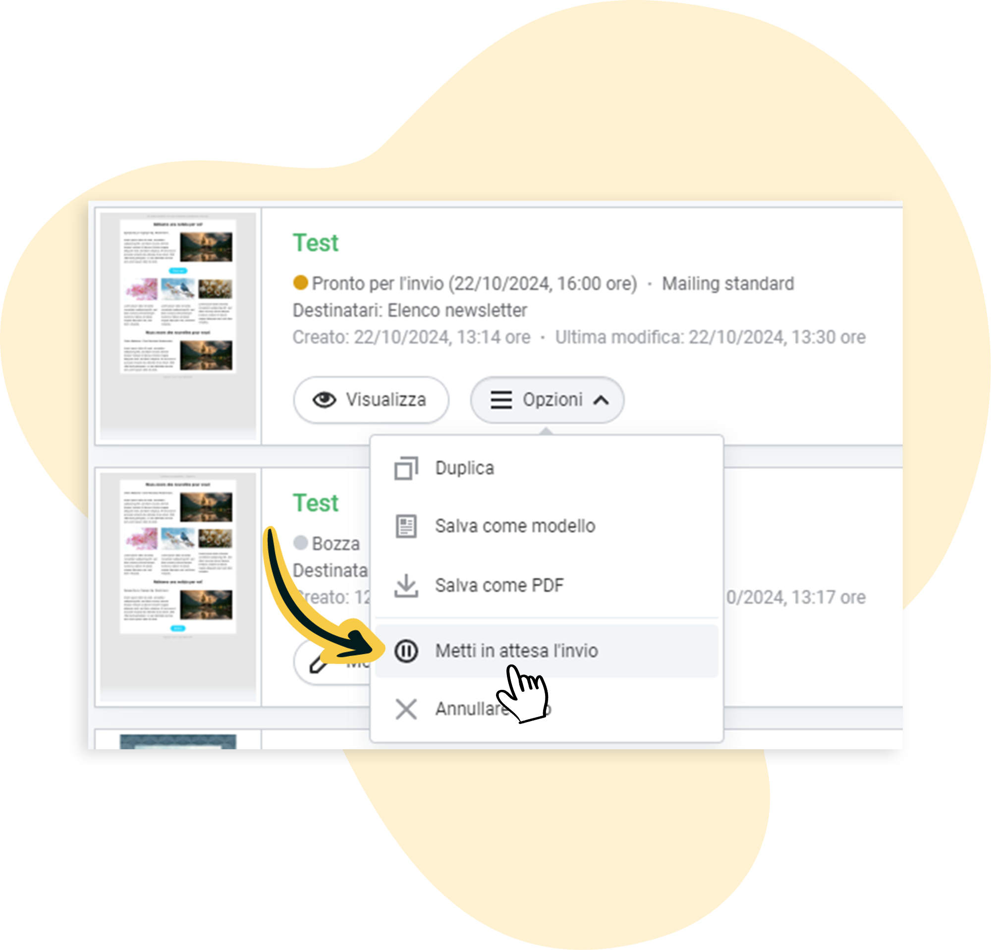 Se hai già impostato il momento di invio della tua newsletter, hai la possibilità di metterla in pausa. Questa opzione è utile ad es. negli scenari seguenti: