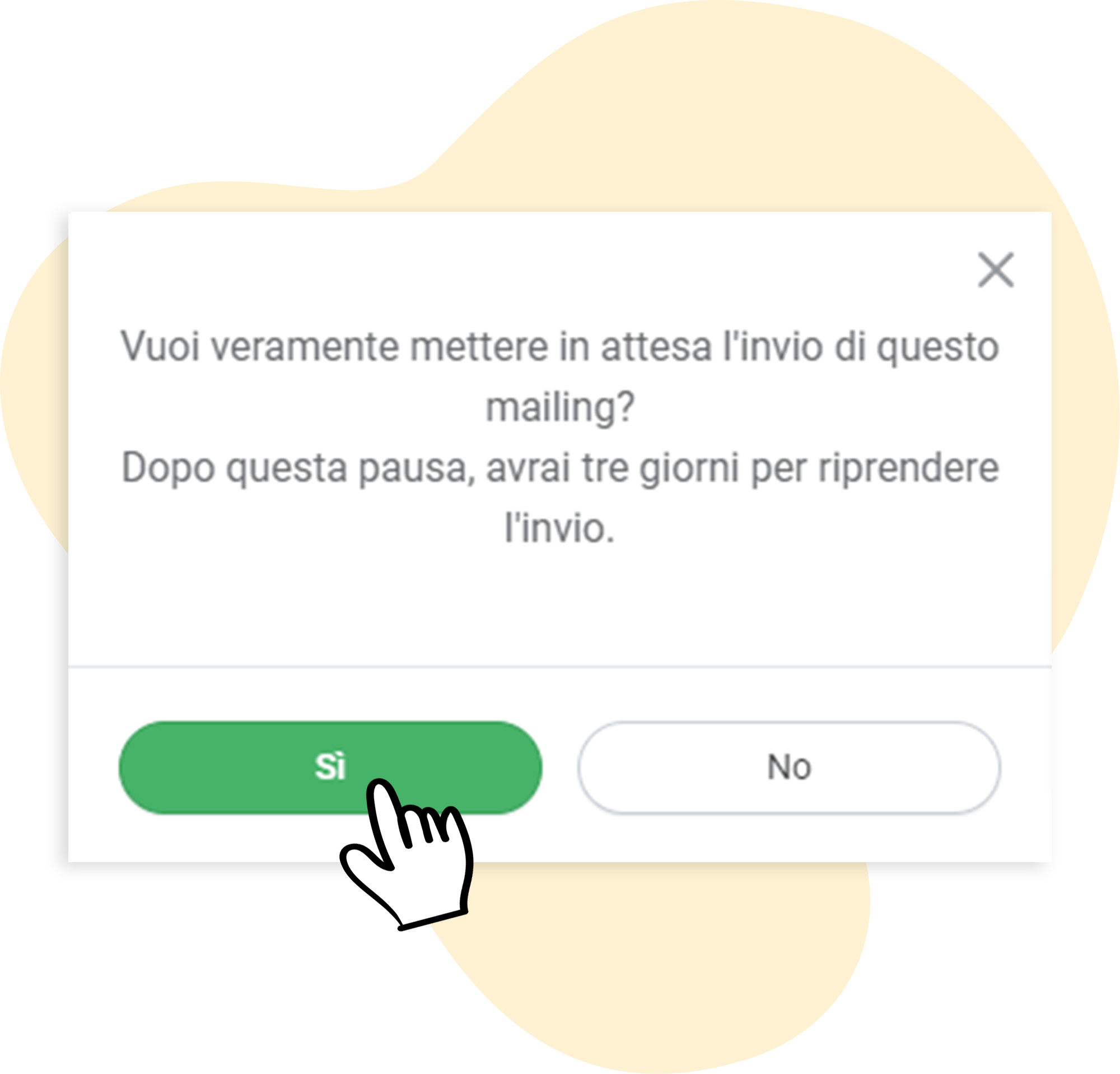 Puoi riprendere l’invio messo in pausa entro i successivi 3 giorni; dopo di che l’invio verrà annullato.
