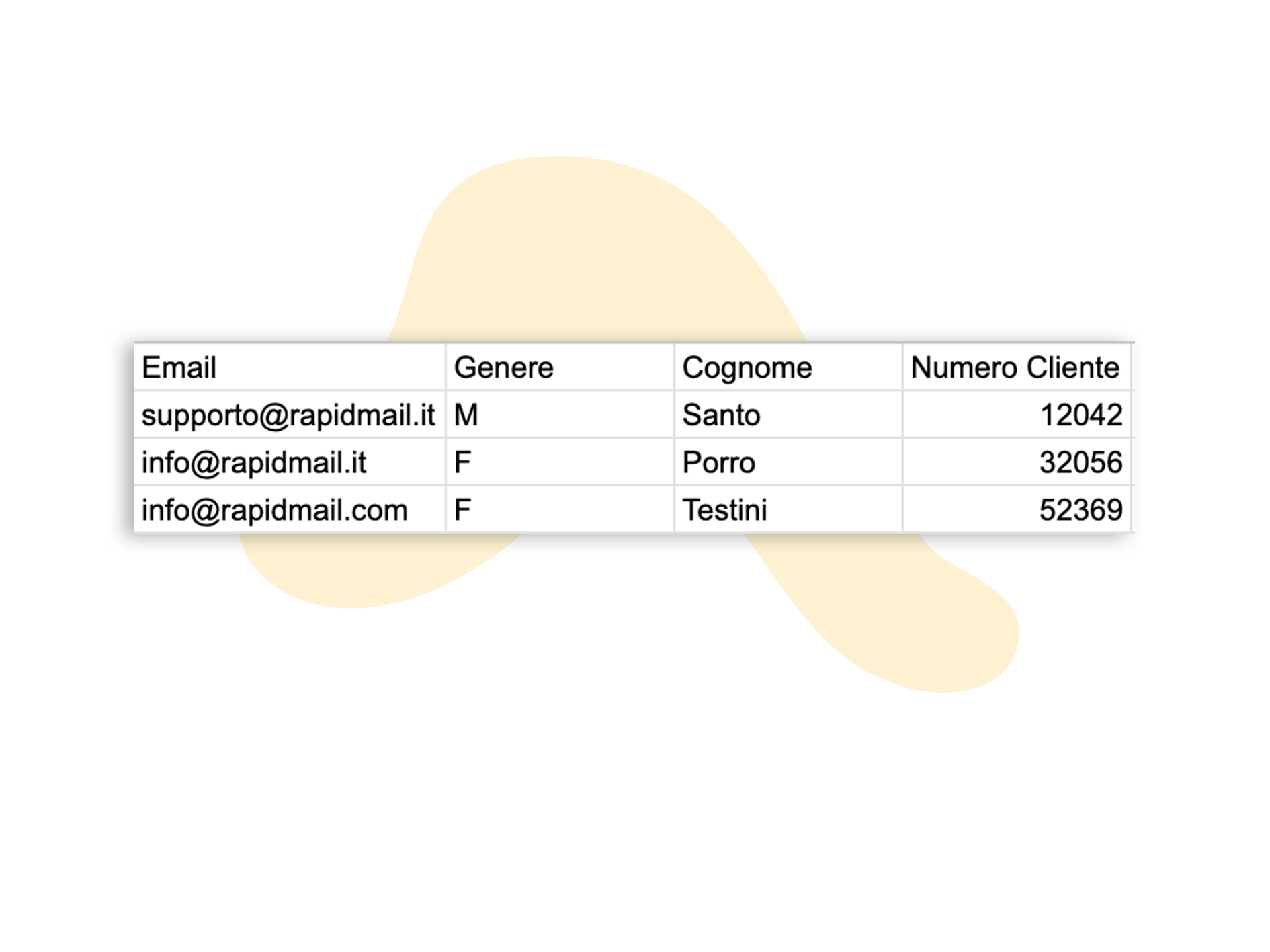 Aggiungi semplicemente una colonna aggiuntiva al file di importazione, ad esempio con il numero cliente. Durante l'importazione dei destinatari, dovrai solo assegnare questa colonna come campo extra, per esempio "Extra 1". Segui la nostra guida all'importazione dei destinatari.