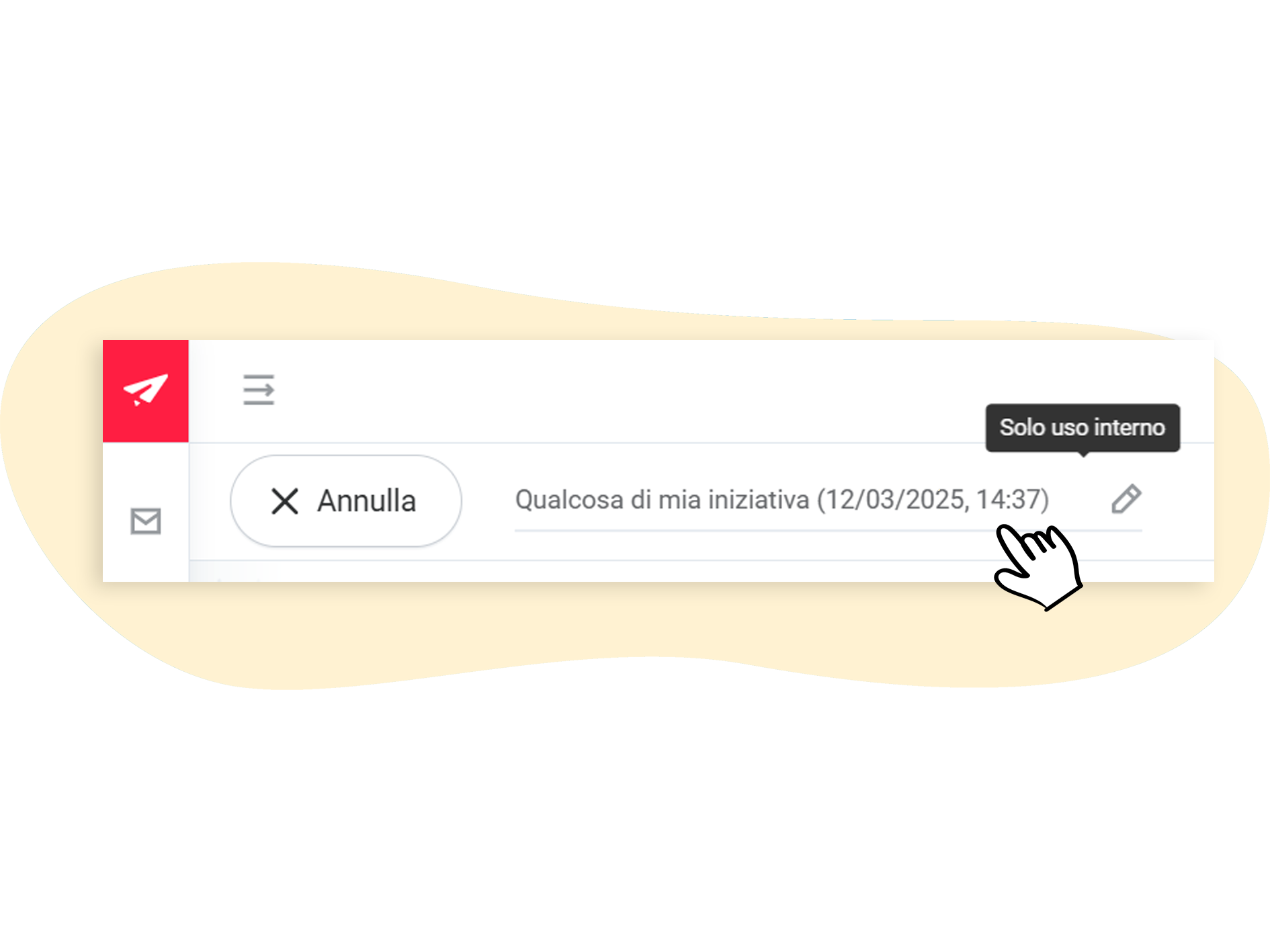 Per mantenere una migliore visione d'insieme, è possibile personalizzare i titoli dei percorsi dell'automazione. Il titolo non viene visualizzato dai destinatari e viene utilizzato solo per scopi interni. È possibile personalizzarlo direttamente nel flusso di lavoro facendo clic sul titolo in alto a sinistra e digitando il nome desiderato. Le modifiche, come tutte le modifiche, verranno applicate al salvataggio successivo.
