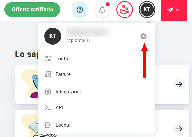 Accedi al tuo account rapidmail e vai su Nome utente > Impostazioni account.
