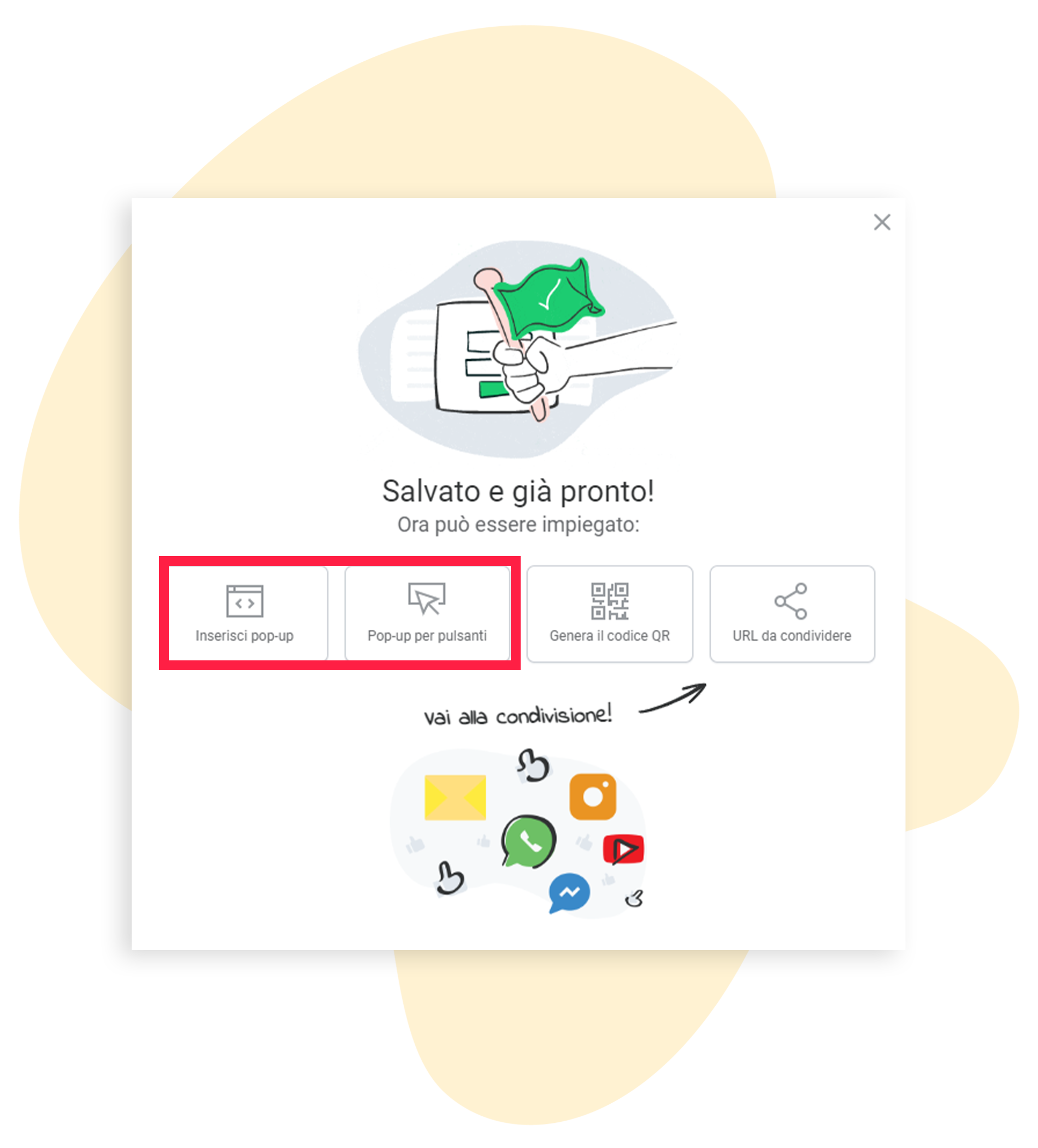 - Configura il Pop-up per i pulsanti secondo le esigenze del tuo sito.