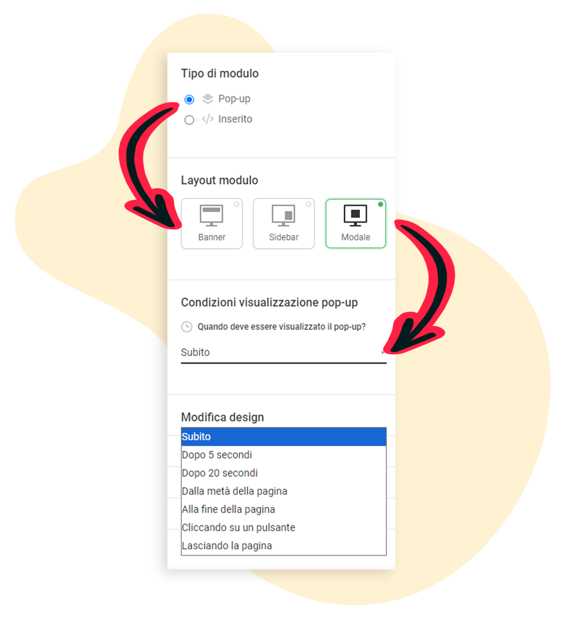 Creazione di moduli di iscrizione alla newsletter sotto forma di pop-up (opzione 1)
