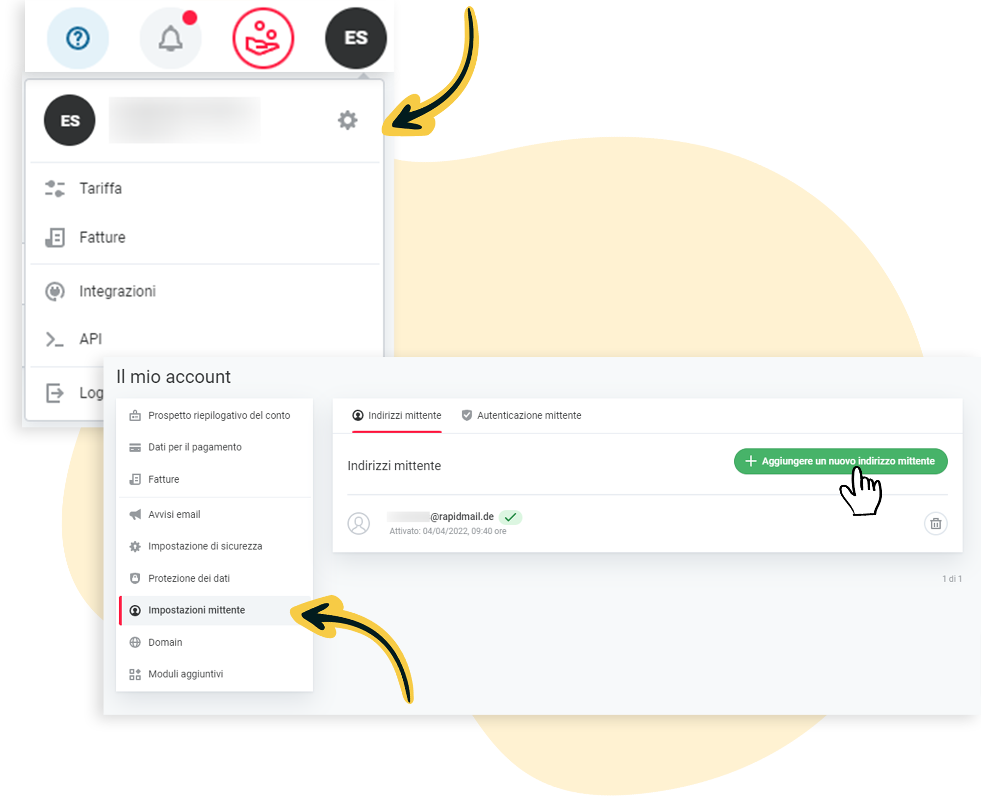 In rapidmail puoi creare uno o più indirizzi mittente e selezionarli per l’invio. L’indirizzo mittente che imposti per ogni invio viene visualizzato dai tuoi contatti direttamente nella casella di posta ed è anche l’indirizzo che i destinatari contattano quando rispondono alla newsletter. In questo articolo ti mostreremo dove puoi trovare l’opzione per creare un nuovo indirizzo mittente nel tuo account rapidmail.