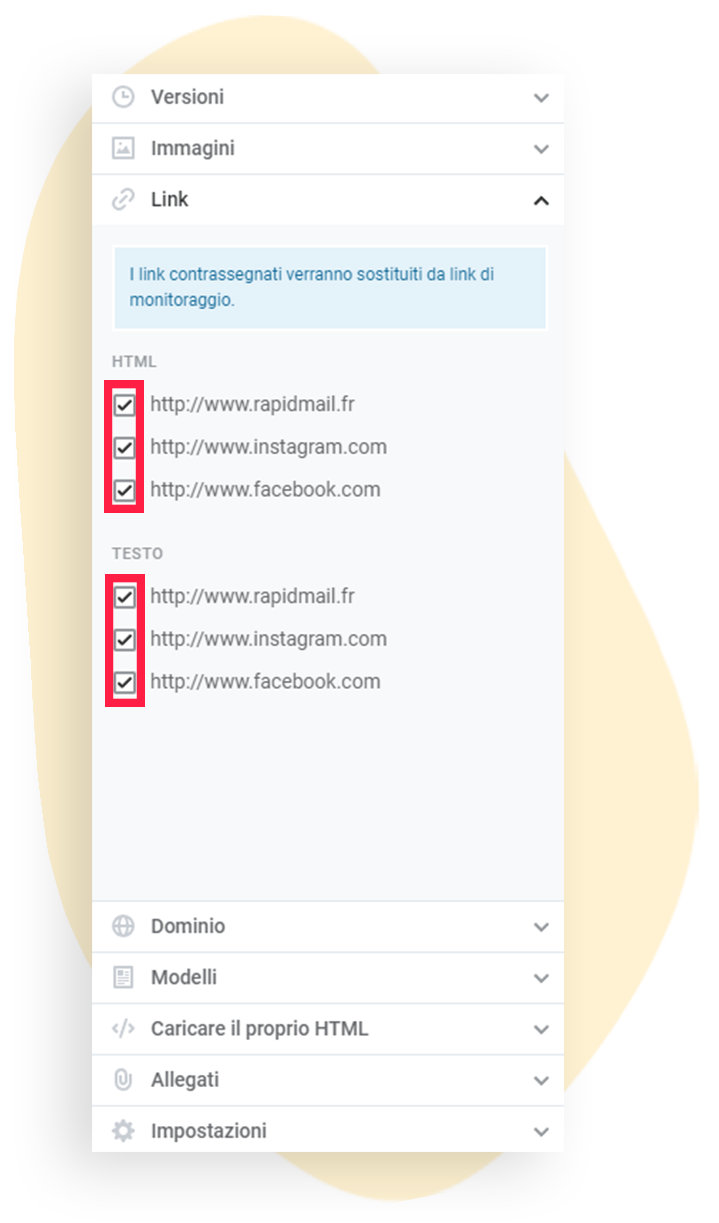 Disattivazione/attivazione del tracking dei link per le tue newsletter