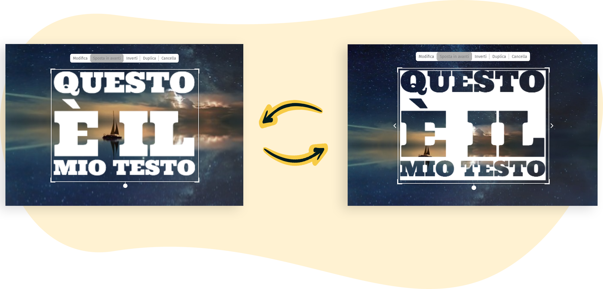 - Invertire: inverti i colori in modo da far risaltare meglio il design del testo.