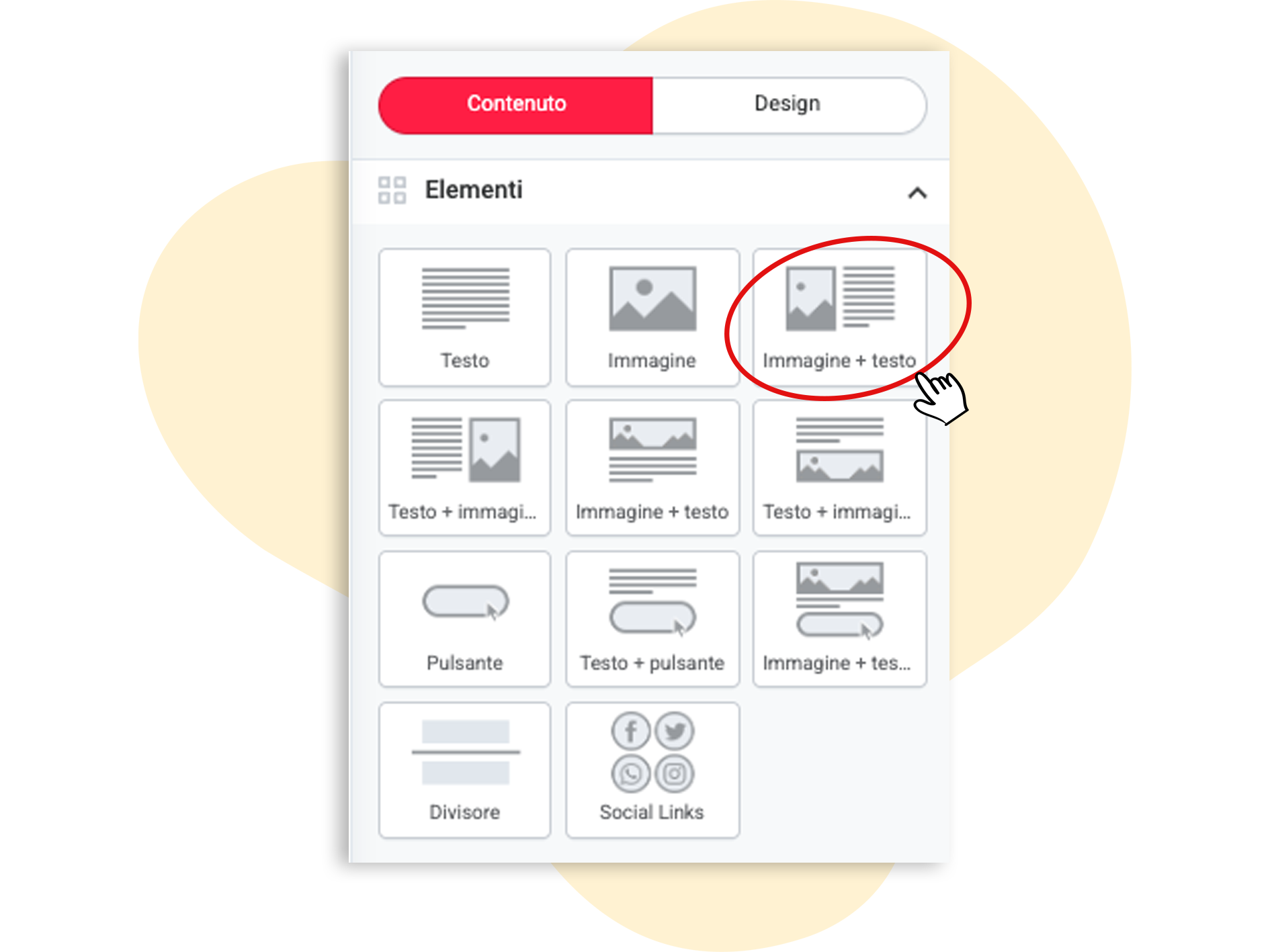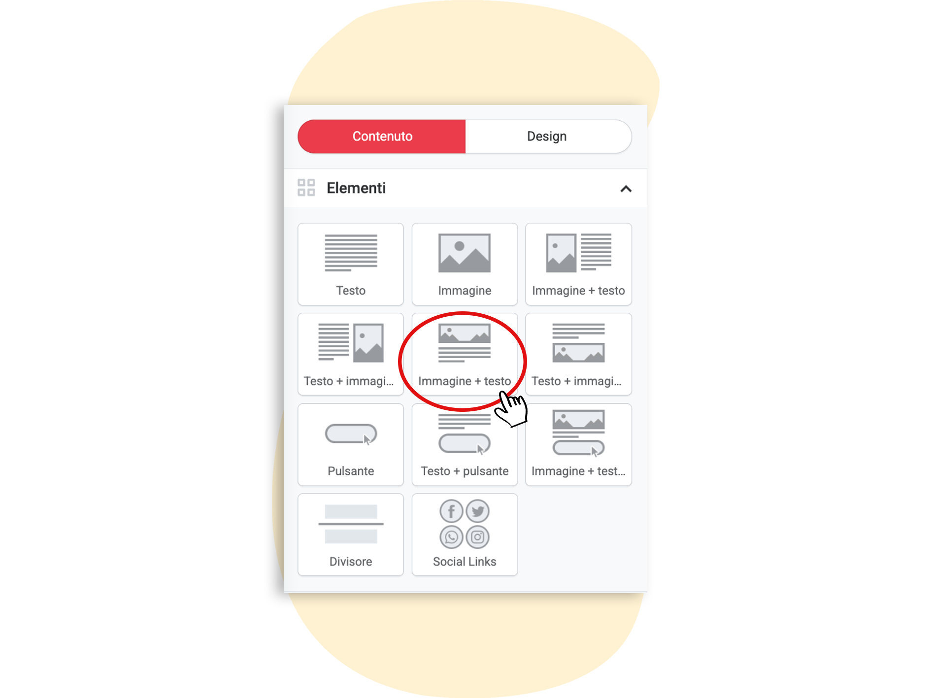 Ecco come fare: per prima cosa, trascina un elemento immagine + testo nella posizione desiderata della newsletter.