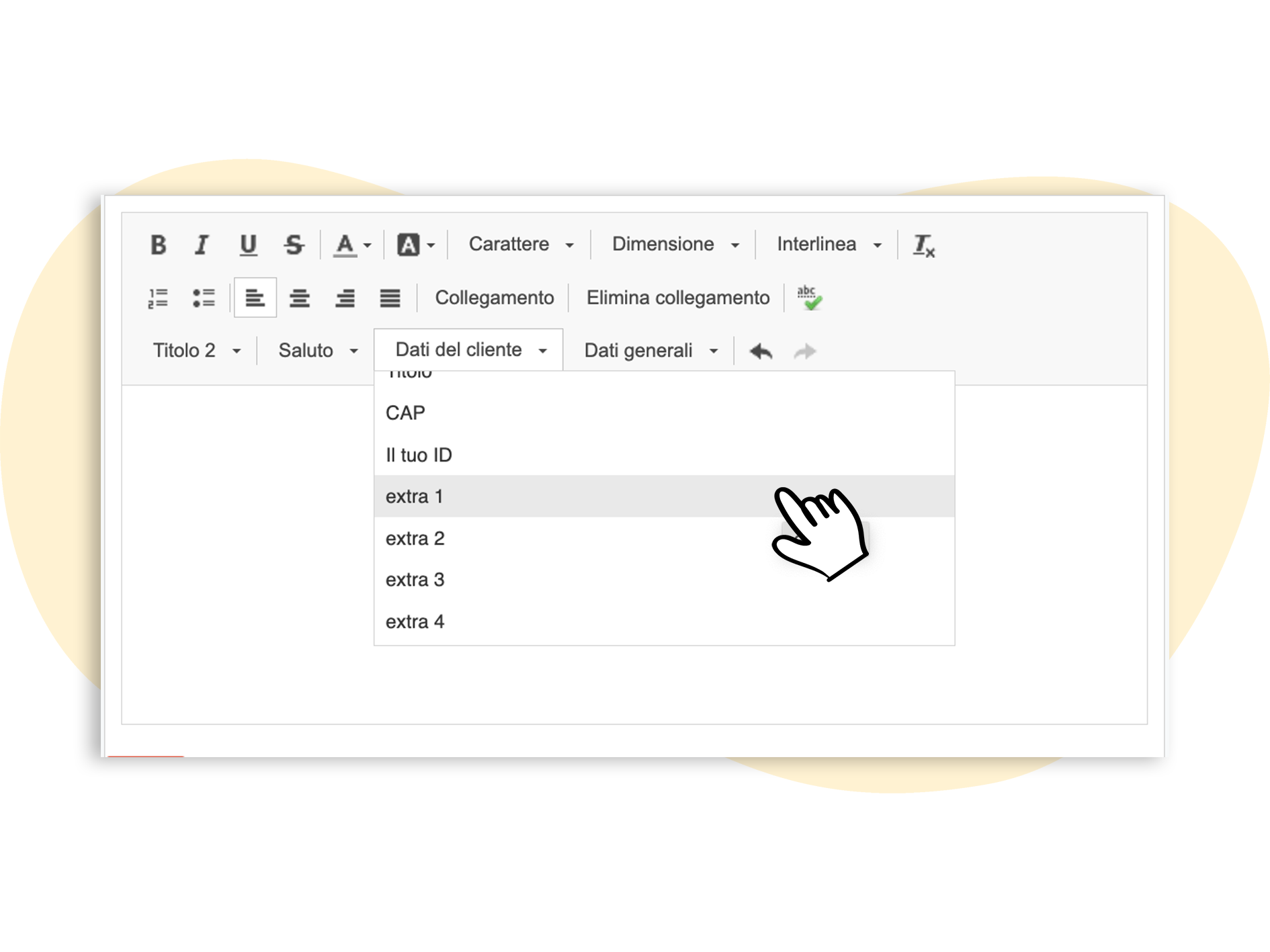 La variabile verrà visualizzata direttamente nel testo. Per trasformare il testo in link, evidenzialo con il mouse e clicca su Collegamento. Si aprirà una finestra dove potrai inserire la parte statica del link seguita dalla variabile. Puoi anche modificare il testo del link a tuo piacimento.