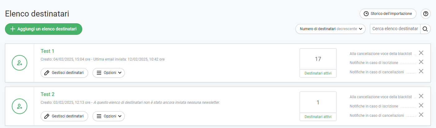 Dopo l'importazione, è possibile utilizzare e gestire l'elenco dei destinatari come di consueto in rapidmail.