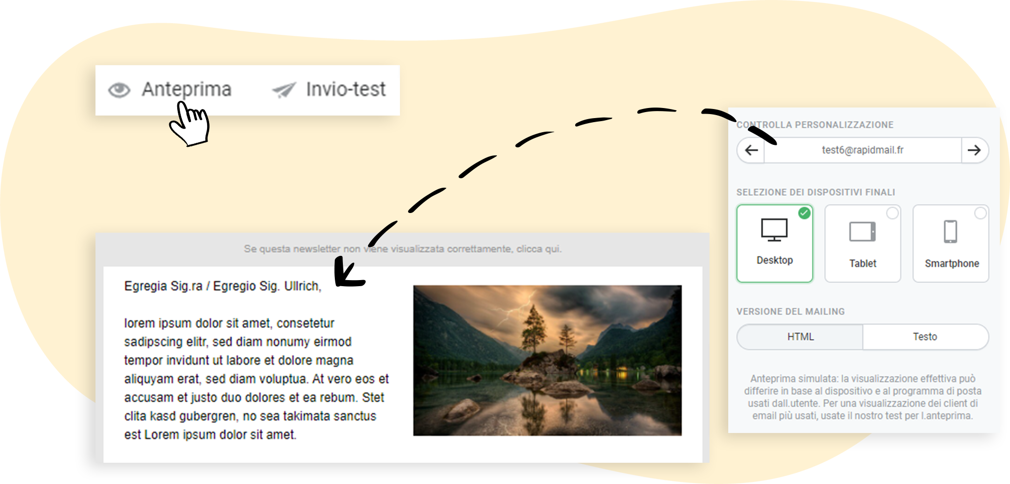 ⚠️ Prima dell’invio ti consigliamo di testare la funzione di personalizzazione (descritta nel paragrafo precedente).