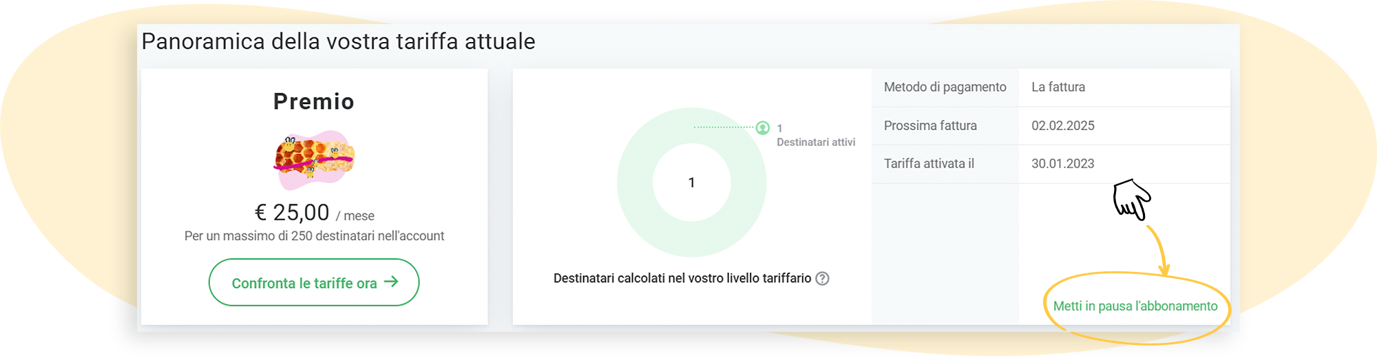 - Se utilizzi un pacchetto rapidmail mensile, puoi impostarne la sospensione in qualsiasi momento.