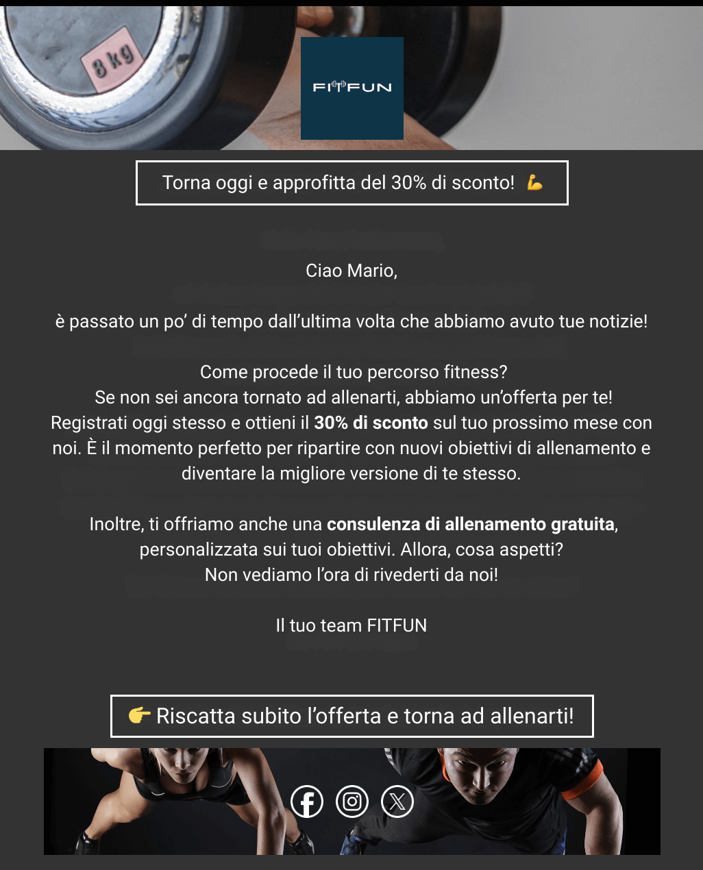 - 💌 Messaggi personali: "Ciao Luca, ci farebbe davvero piacere rivederti!"