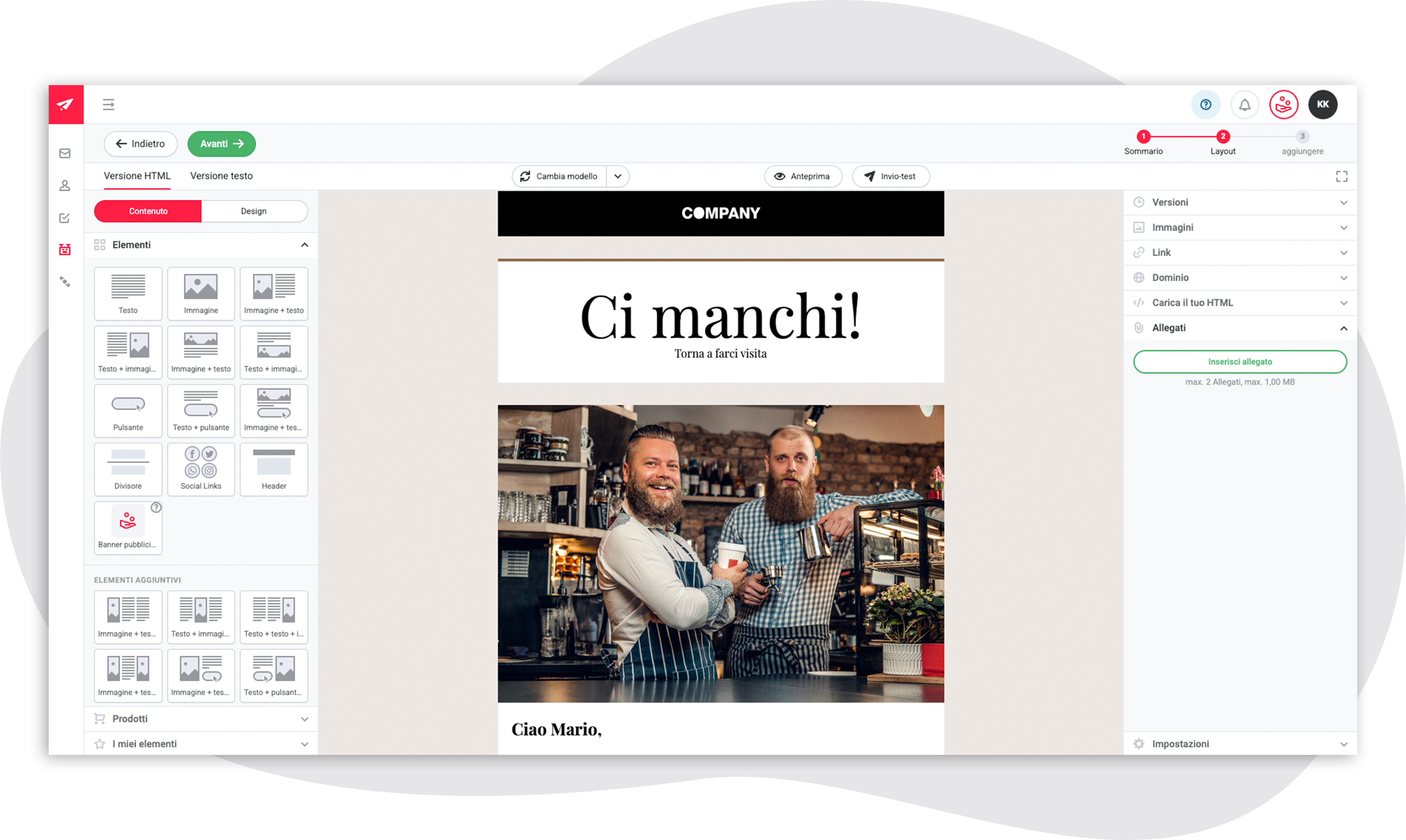 Con rapidmail puoi sfruttare la personalizzazione intelligente per creare email su misura, capaci di riconquistare l’interesse (e il cuore) dei tuoi clienti. Rendi le tue email di riattivazione davvero efficaci inserendo offerte esclusive e contenuti che stimolino la curiosità e la voglia di tornare.