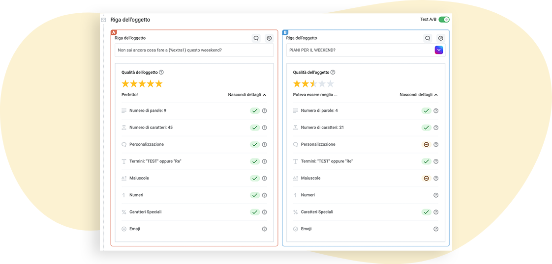 Anche se pensi di aver scritto l’oggetto perfetto, potresti sorprenderti dei risultati di un test A/B. A volte bastano poche parole diverse, un’emoji o un ordine leggermente cambiato per influenzare in modo significativo il tasso di apertura della tua email.