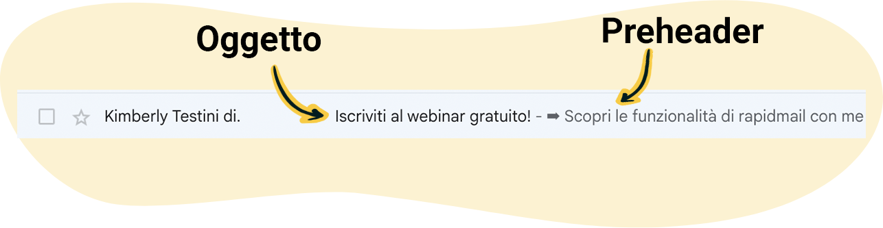 Tutte le informazioni aggiuntive che vuoi comunicare prima ancora che l’email venga aperta, inseriscile nel preheader, ovvero il testo di anteprima. Non superare gli 80 caratteri, per assicurarti che venga visualizzato interamente.