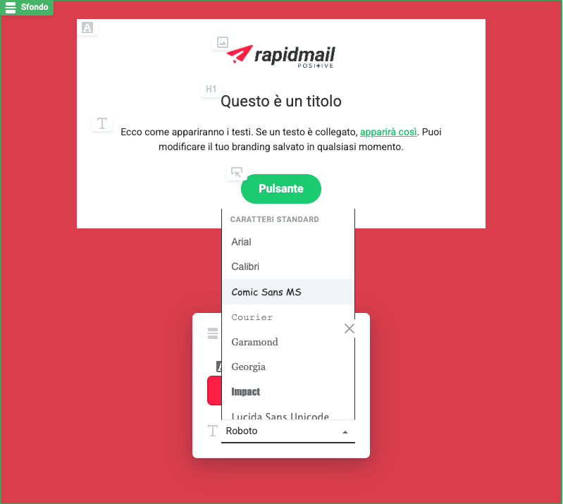 Cosa succede se il font che utilizzi nel tuo design sul tuo sito web non è tra quelli offerti da rapidmail? In tal caso lo sostituiamo con un font standard. Tuttavia, puoi cambiarlo in qualsiasi momento e selezionarne uno che ti piace di più o che assomiglia maggiormente a quello della tua azienda. Con rapidmail hai a disposizione 40 diversi web font che conferiscono a ogni newsletter quel tocco in più. ✨