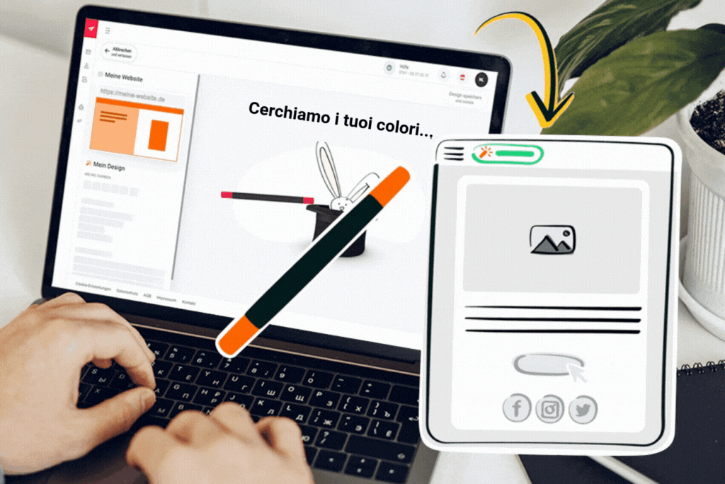 Non preoccuparti: anche con il One Click Design nulla è definitivo. Una volta creato il tuo design personalizzato nell'editor con un clic, puoi decidere se ti piacciono le impostazioni di design proposte o se desideri apportare alcune piccole modifiche. Ad esempio, puoi modificare la curvatura del pulsante di invito all'azione, cambiare il colore di sfondo o variare il logo.