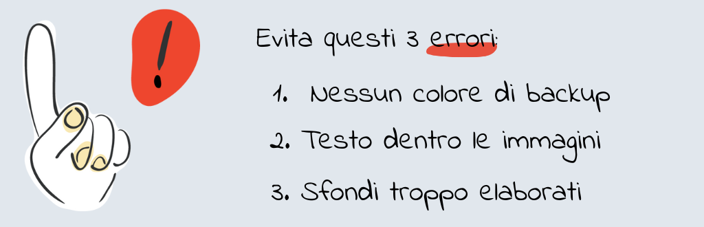 Ci sono alcuni scivoloni frequenti da cui è meglio stare alla larga. Per esempio, usare sfondi troppo elaborati o caotici rischia di mettere in secondo piano il contenuto principale. Un altro errore diffuso è incorporare il testo direttamente nell’immagine: se questa non viene caricata dal client di posta, il messaggio si perde.