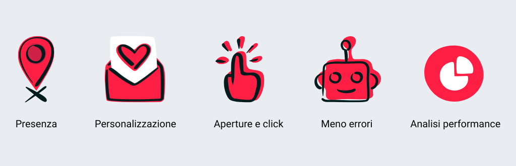 L’email marketing automation è una leva potente: ti permette di automatizzare numerose attività, come l’invio di messaggi al momento giusto, senza doverlo fare manualmente. Puoi attivare workflow come: